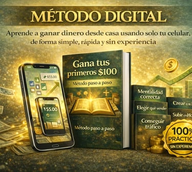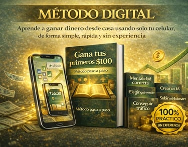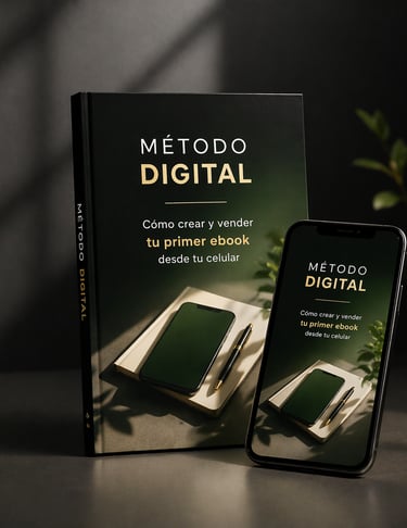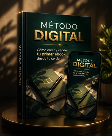 El MÉTODO DIGITAL es la guía práctica que te muestra paso a paso qué hacer, desde cero, para crear, lanzar y vender tu propio producto digital usando solo tu celular.